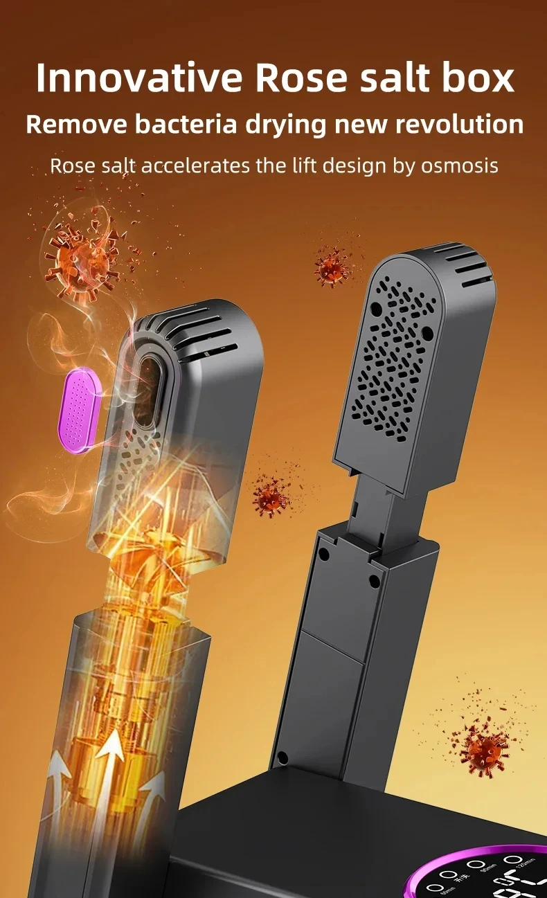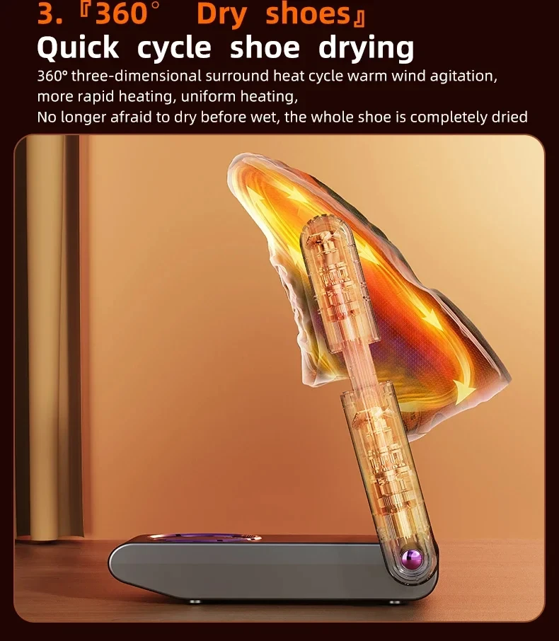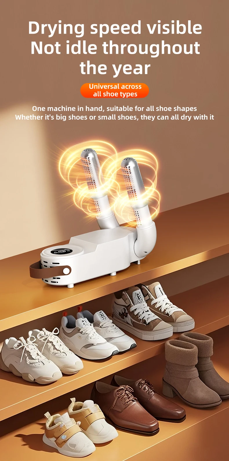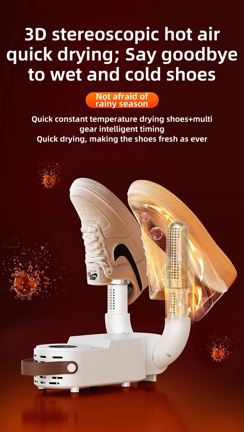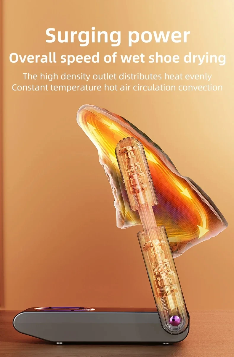 Este secador de sapatos foi projetado para secar seus sapatos de forma rápida e eficiente, economizando tempo e esforço.