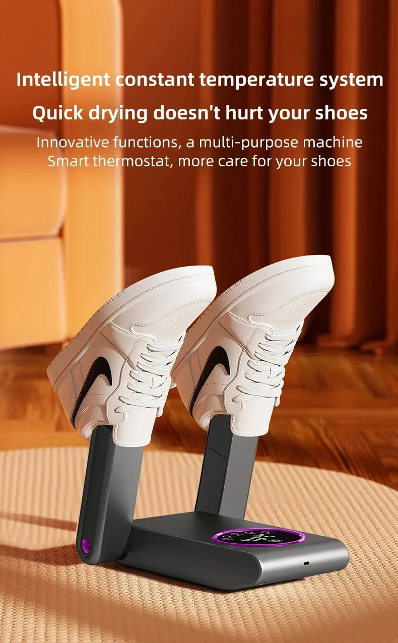 Com sua interface amigável, este secador de sapatos é fácil de operar, garantindo uma experiência descomplicada.