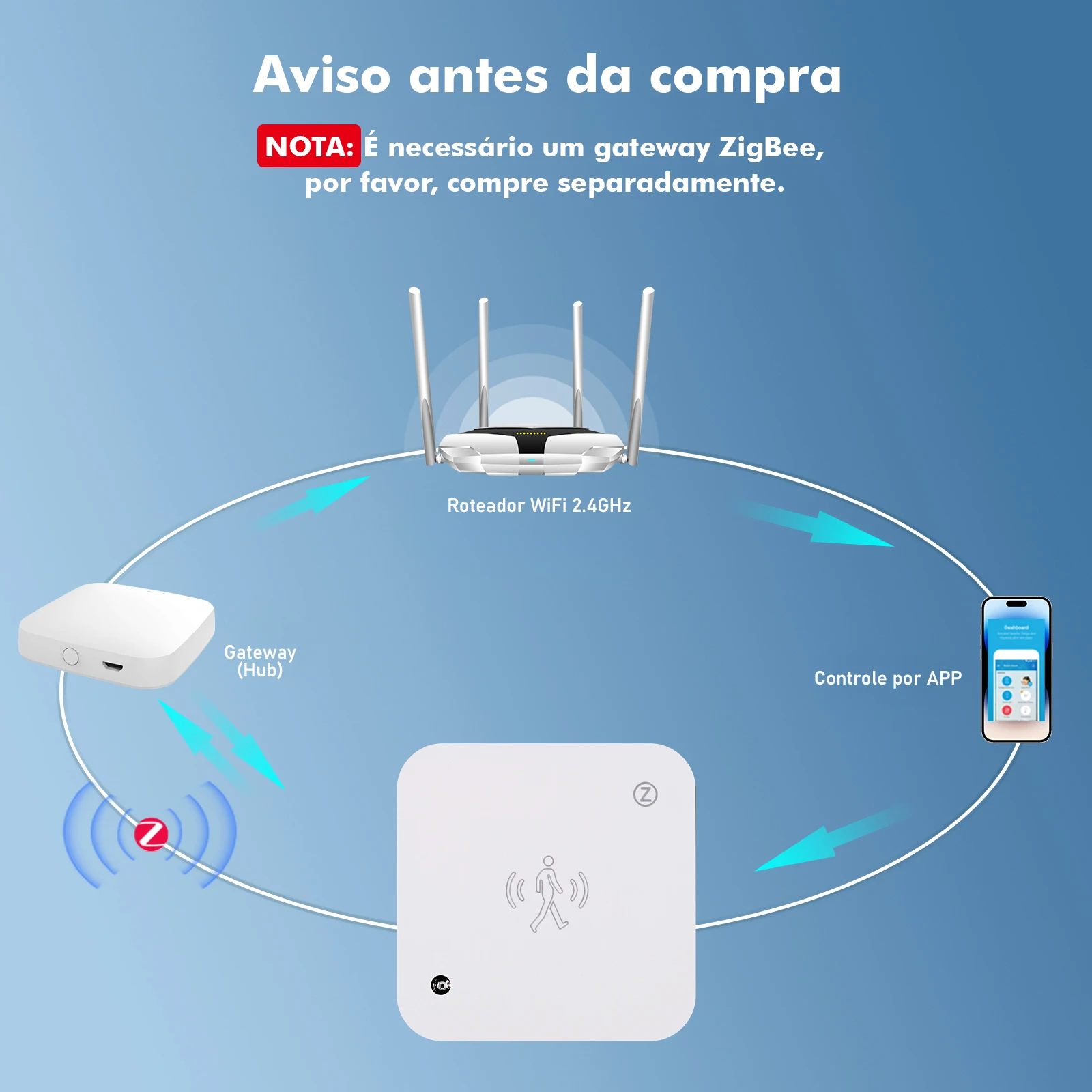 Conecte-se facilmente a um gateway Zigbee (vendido separadamente) para controle remoto pelo aplicativo, notificações em tempo real e automação de dispositivos inteligentes.